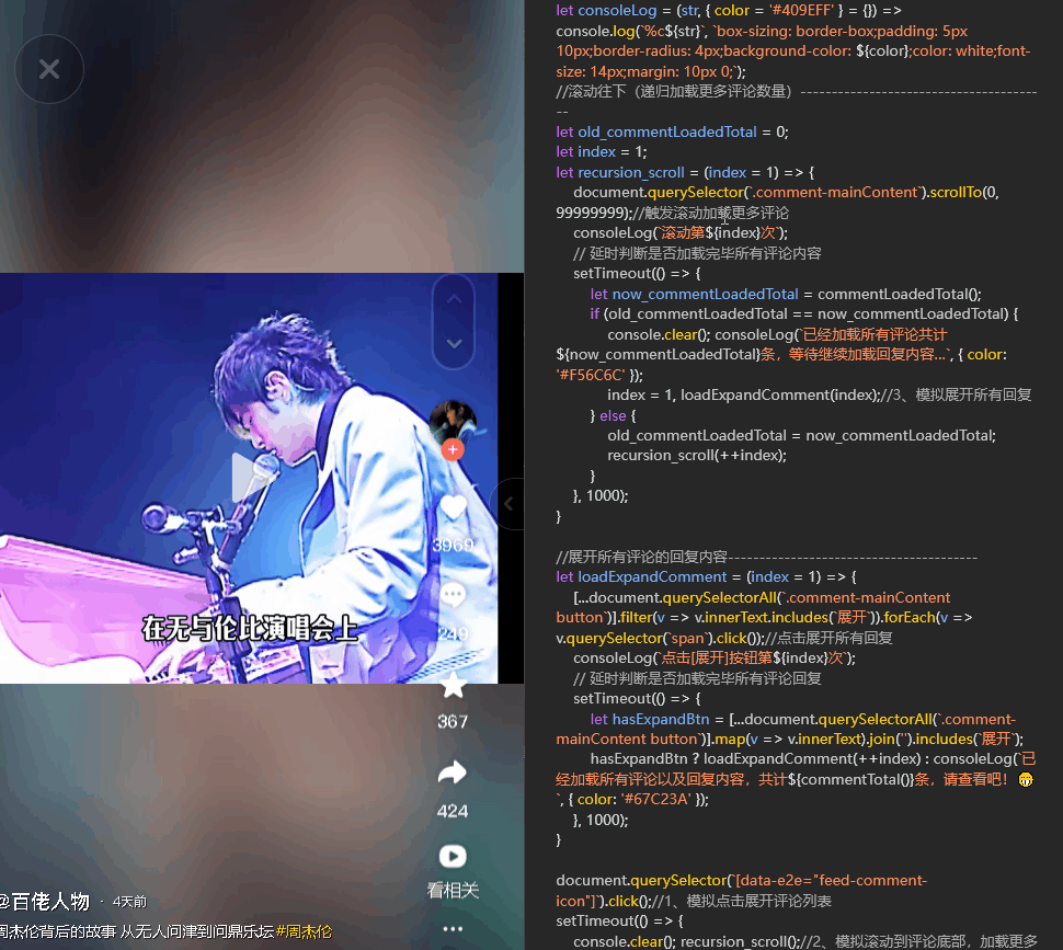 console.clear(); recursion_scroll();//2、模拟滚动到评论底部,加载更多内容